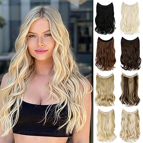 Felendy Halo Hair Extensions Thick Curly Wavy Invisible Wire Extension Fish Line Clip In Hairpiece Hidden Crown For Women 18 Inch Bleach Blonde Walmart Com
